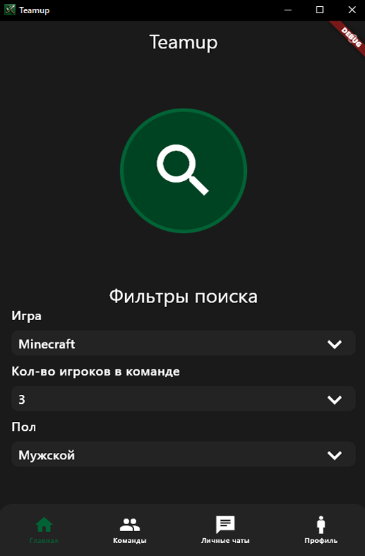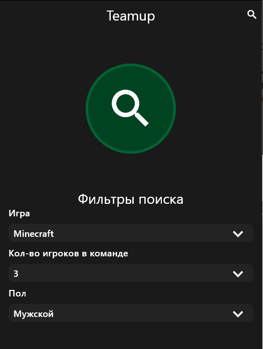 Teamup - это приложение для быстрого поиска тиммейтов в команду для игры, просто по нажатию одной кнопки.